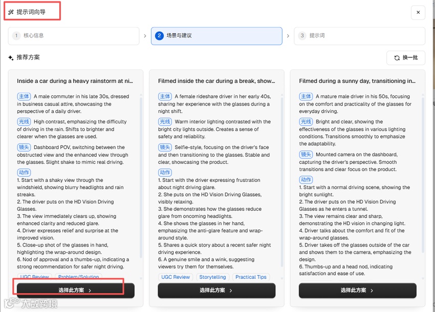 配合【提示词向导】功能,上传产品图后,AI自动提炼卖点、锁定目标人群,并生成具有情绪感染力的实战话术,大幅降低创作门槛。