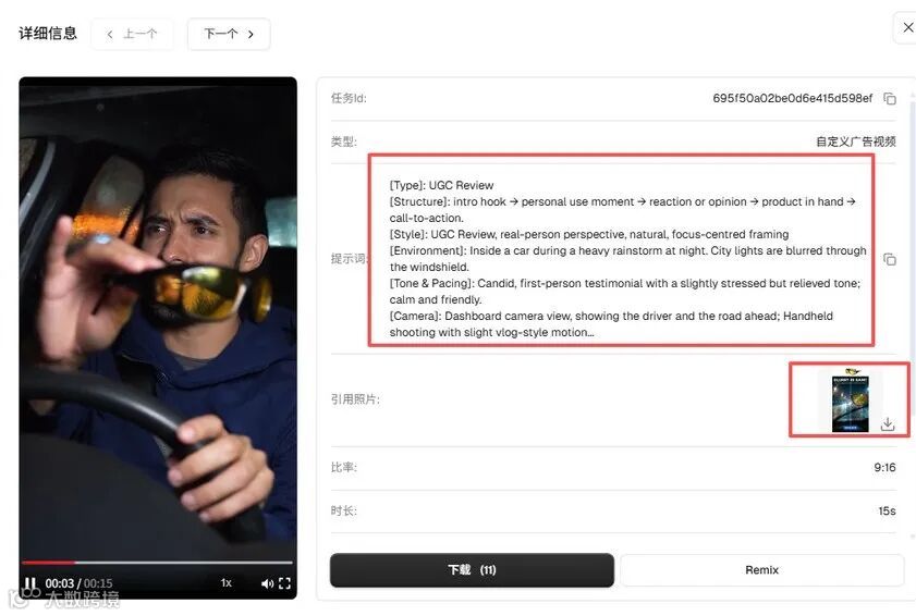 以下案例展示Nextify如何通过【提示词向导】模板,在无需复杂指令的情况下,生成高转化视频素材。