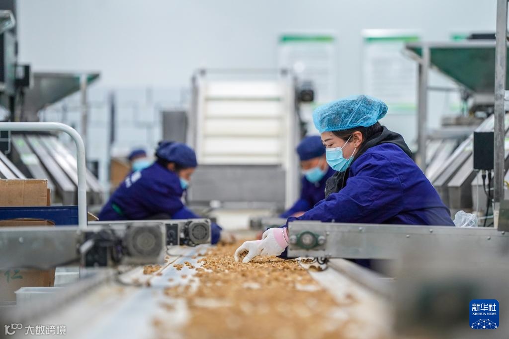 的工人在分拣核桃仁。新华社记者 彭奕凯 摄