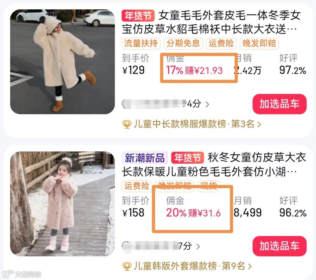 据选品中心数据显示,主流AI童装售价集中在99–139元,佣金率20%–30%。以销售8000件、均价100元、佣金率20%测算,单账号毛利达16万元以上。