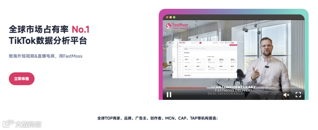 综合型TikTok数据分析平台,用户基数大、数据更新快、覆盖全,被全球品牌方、广告主、MCN机构及TSP服务商广泛采用。