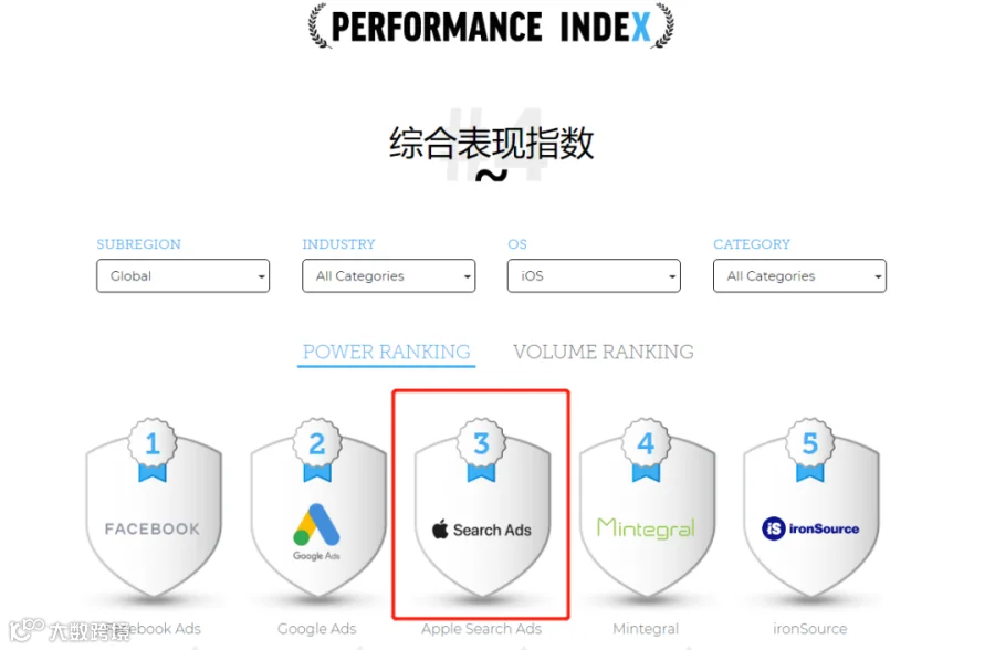 苹果官网数据显示,有70%的访问者会通过在App Store自发搜索来查找应用程序,而有65%的应用程序下载会在访问者搜索后直接产生。根据著名第三方归因平台Appsflyer在最新报告中指出, Apple Search Ads在全球iOS广告渠道的规模榜单和实力榜单排名分别为第3和第4。由此可见,Apple Search Ads是不容忽视的优质流量选择。