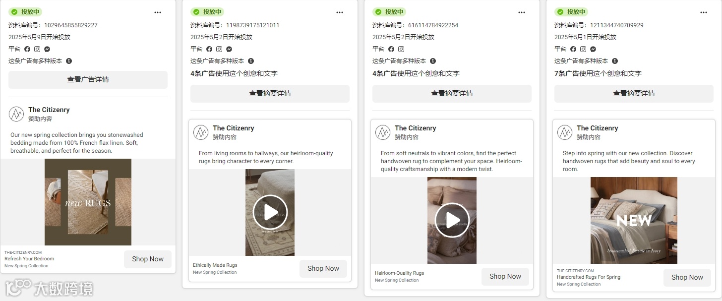 此外,The Citizenry大量的广告文案都是变体重复,每个广告对应多条变体,但统一了视觉风格与信息结构。这既能降低创意成本,高效拓展广告规模,也能快速找出高表现创意,从而提升广告效果。