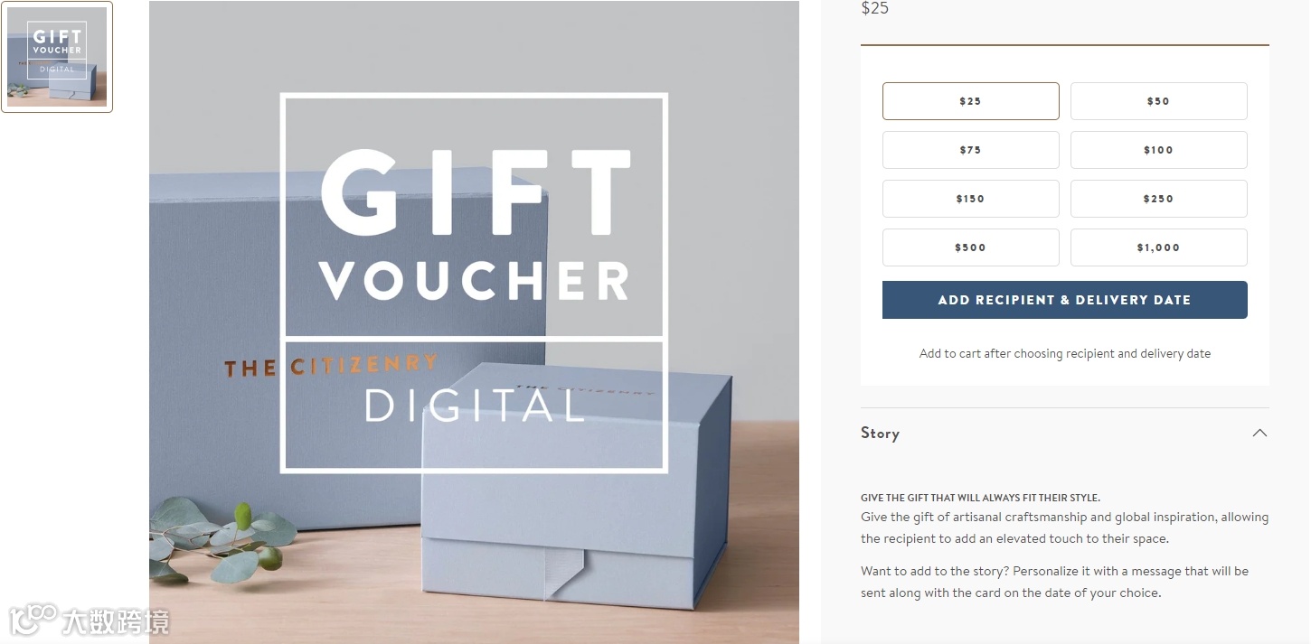 The Citizenry针对这类心理不安,推出了设计感强、金额灵活的电子礼品卡,并强调“总有一款符合他们的风格”。这既能延长品牌与潜在客户的接触路径,即便消费者自己暂无购买计划,也可能通过送礼行为,将品牌推荐给他人,起到口碑传播与冷启动转化的双重效果。