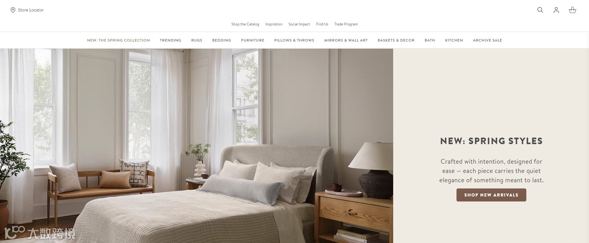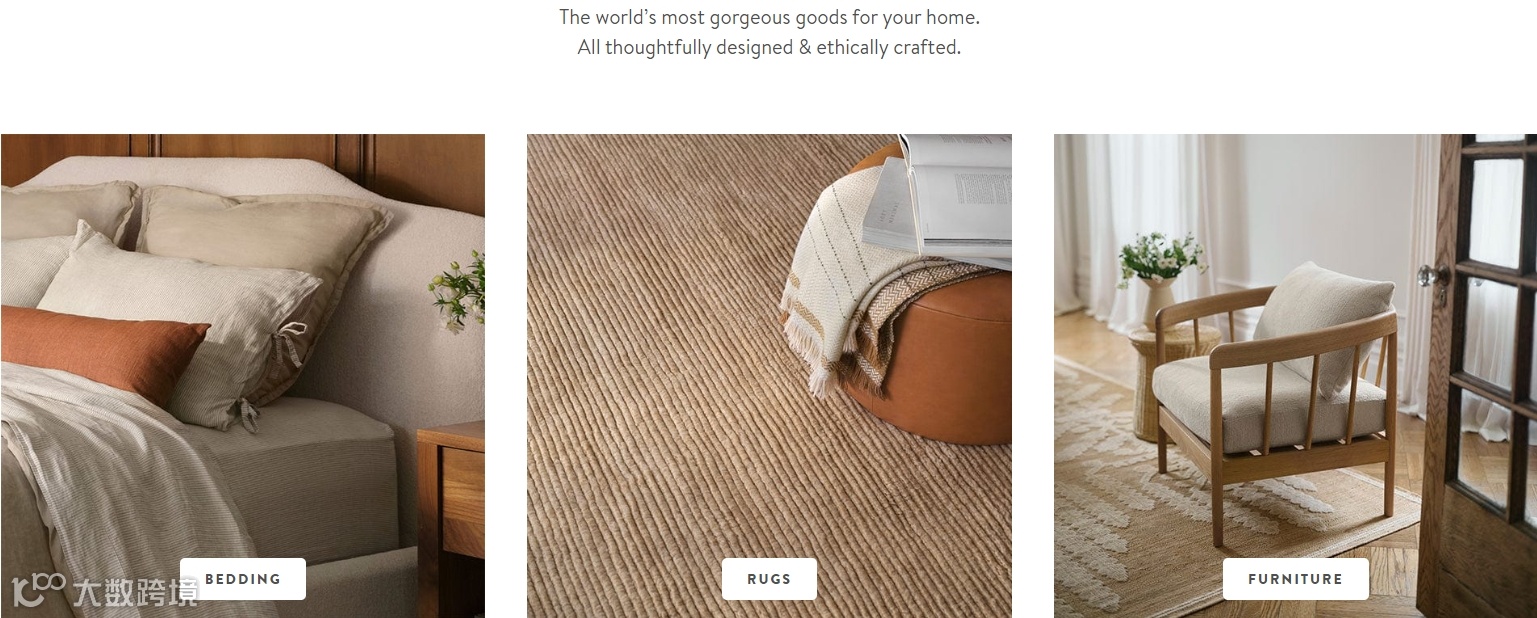 视觉一致性:高端家居的潜在消费者,往往对整体风格有较强的控制欲,希望每一个细节都能协调一致,形成统一、克制、有品味的视觉氛围。The Citizenry官网的图片,统一采用自然光拍摄、米色调背景与实景陈列,并搭配极简界面设计。