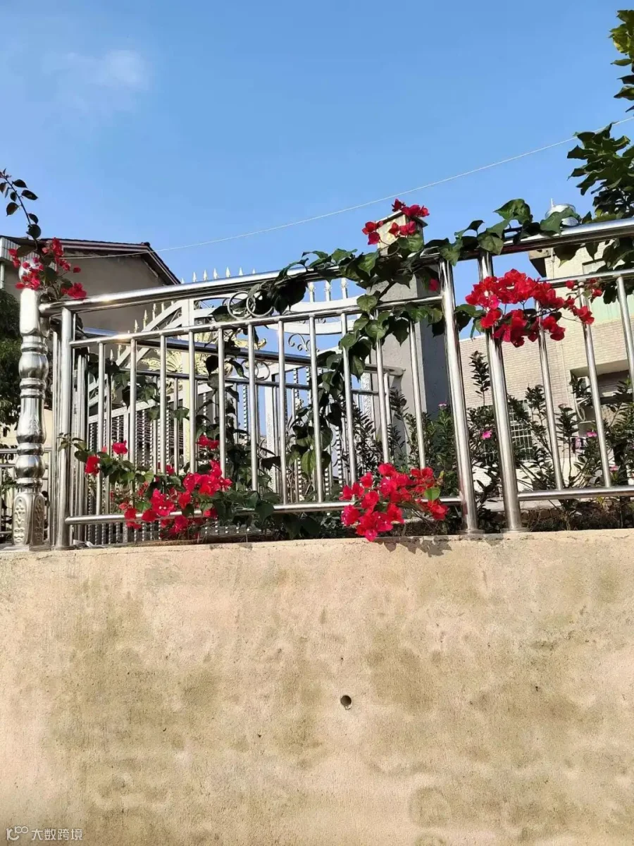 归途中,夕阳洒在乡道上。几户农家院落映入眼帘,竹篱与墙头泼洒着浓烈色彩——正是三角梅。它们成团、成簇、成瀑般倾泻而下,红如火,紫似霞,在灰瓦白墙间毫无保留地绽放,展现出一种原始而蓬勃的生命力。妻子与我不约而同发出赞叹。那一刻,一个念头萌生:我们的阳台,也需要这样一簇热烈。