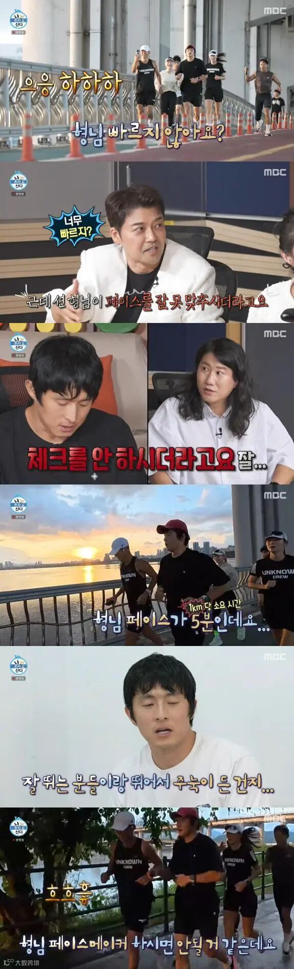 초반부터 빠른 속도로 진행된 러닝 코스에 기안84는 점점 당황하기 시작했다. 내리막은 물론 오르막에서도 줄지 않는 속도에 중간 구간만 지났음에도 체력 소모가 심각해졌다.