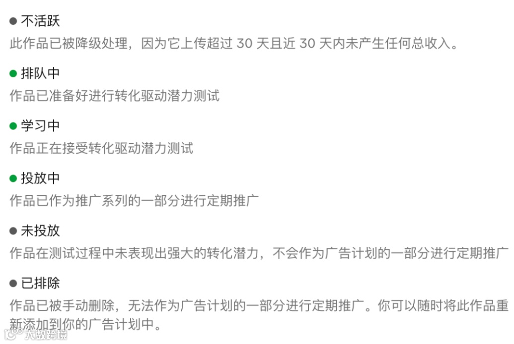 广告创建后的素材状态
