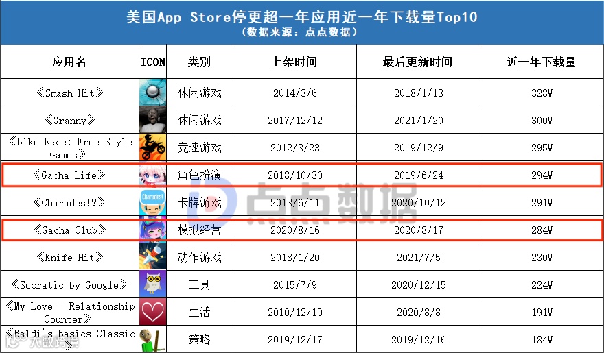 根据点点数据,在美国地区,《Gacha Life 2》一上线就打败了长期霸榜Google Play免费游戏榜榜首的《MONOPOLY GO!》,代替其登上了第一宝座。《Gacha Club》曾停更超过一年,但在今年的下载量仍然达到了284万这个惊人的数字,根据最新数据显示,单《Gacha Club》一款产品,其MAU便已突破千万量级,仅次于《原神》《皇室战争》等热门产品。同样曾停更长达一年之久的《Gacha Life》,其近一年下载量也已达到294万。如果综合Gacha整个系列产品成绩来看,该系列的市场表现无疑非常惊人。