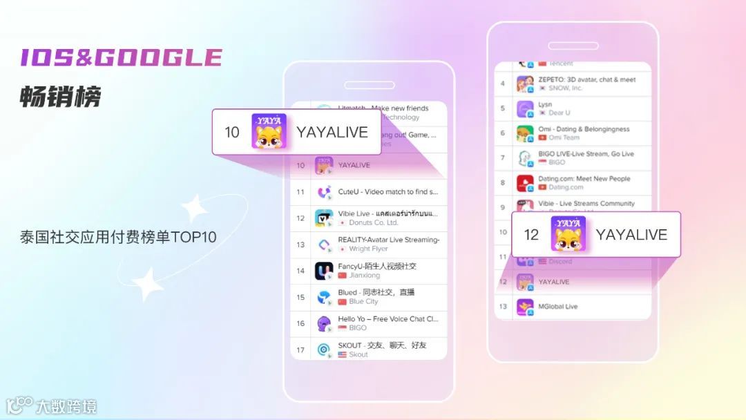 “艾媒咨询2021年度最佳创新文娱平台、浙江省⼀带⼀路优质互联网出海企业、泰国社交应用畅销榜单TOP10、泰国娱乐直播TOP3,全年累计营收近5000万人民币。”⸺这是YAYA直播在2021年交出的成绩单,距离YAYA在泰国正式上线运营,刚好是1年,而在这充满惊喜的一年中,YAYA作为扬帆出海的老朋友,我们之间也有过很深的交集,做过多次的报道。
