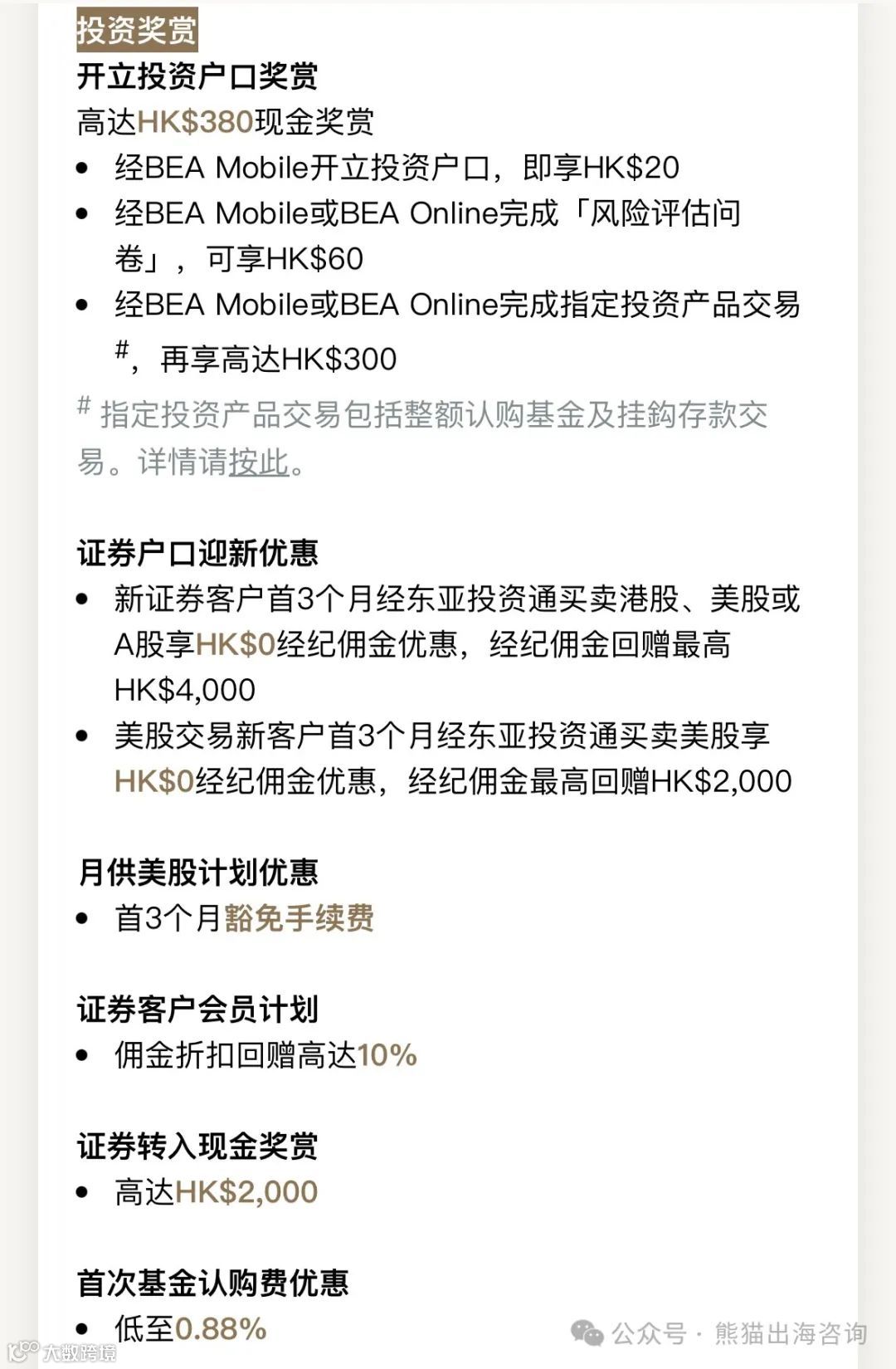 东亚银行(BEA)是香港第一大港资银行,成立于1918年,在香港和内地均有广泛的分支网点。作为一家百年老店,东亚银行在香港和内地均有深厚的根基,是许多内地客户在香港开户的首选。它的优势包括: