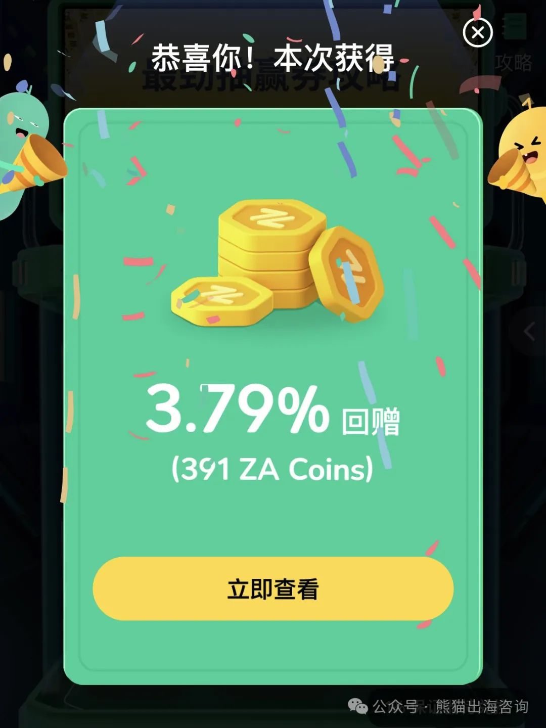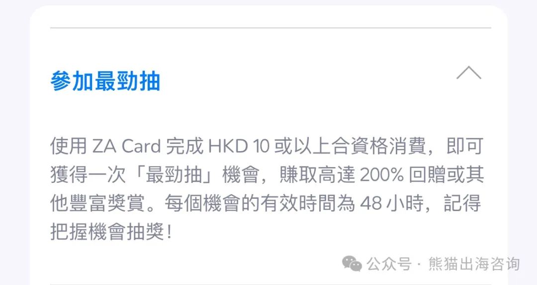 · ZA Coin抽奖:消费达标可抽返现券,100个ZA Coin=1港币,返现比例约1%-4%(如消费100港币抽370个币,返现3.7港币)。