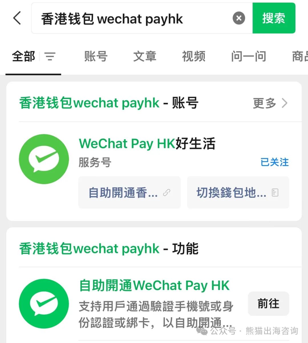 在微信中搜索“WeChat Pay HK”小程序,点击“自助开通香港钱包”,按提示完成身份验证。