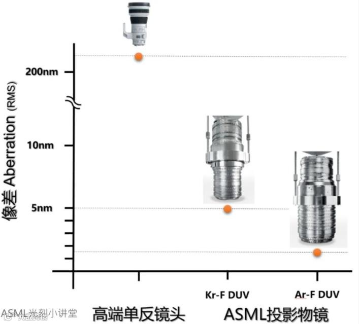 - ASML DUV高端物镜像差≤2nm,远高于普通镜头(200nm以上)。