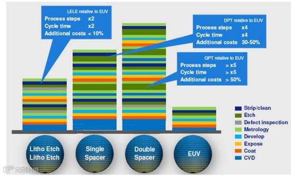 多重曝光可实现更小线宽,但工艺复杂成本高