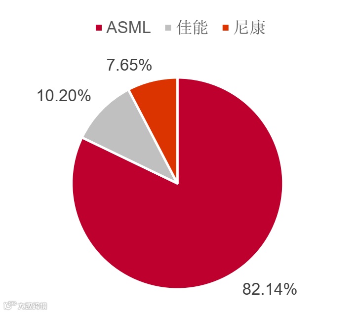 2007年,ASML联合台积电推出浸没式光刻机,成功替代尼康、佳能主推的157nm干式光刻路线,实现市场主导。目前全球光刻机市场由ASML、Nikon、Canon三家企业主导,2022年ASML市占率达82%,Nikon占8%,Canon占10%。