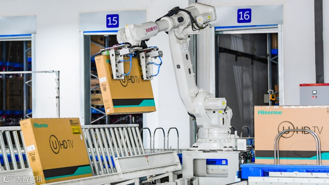 出库环节,日日顺供应链针对大件商品在分拣环节的痛点,创造性地开发了“龙门拣选机器人”。