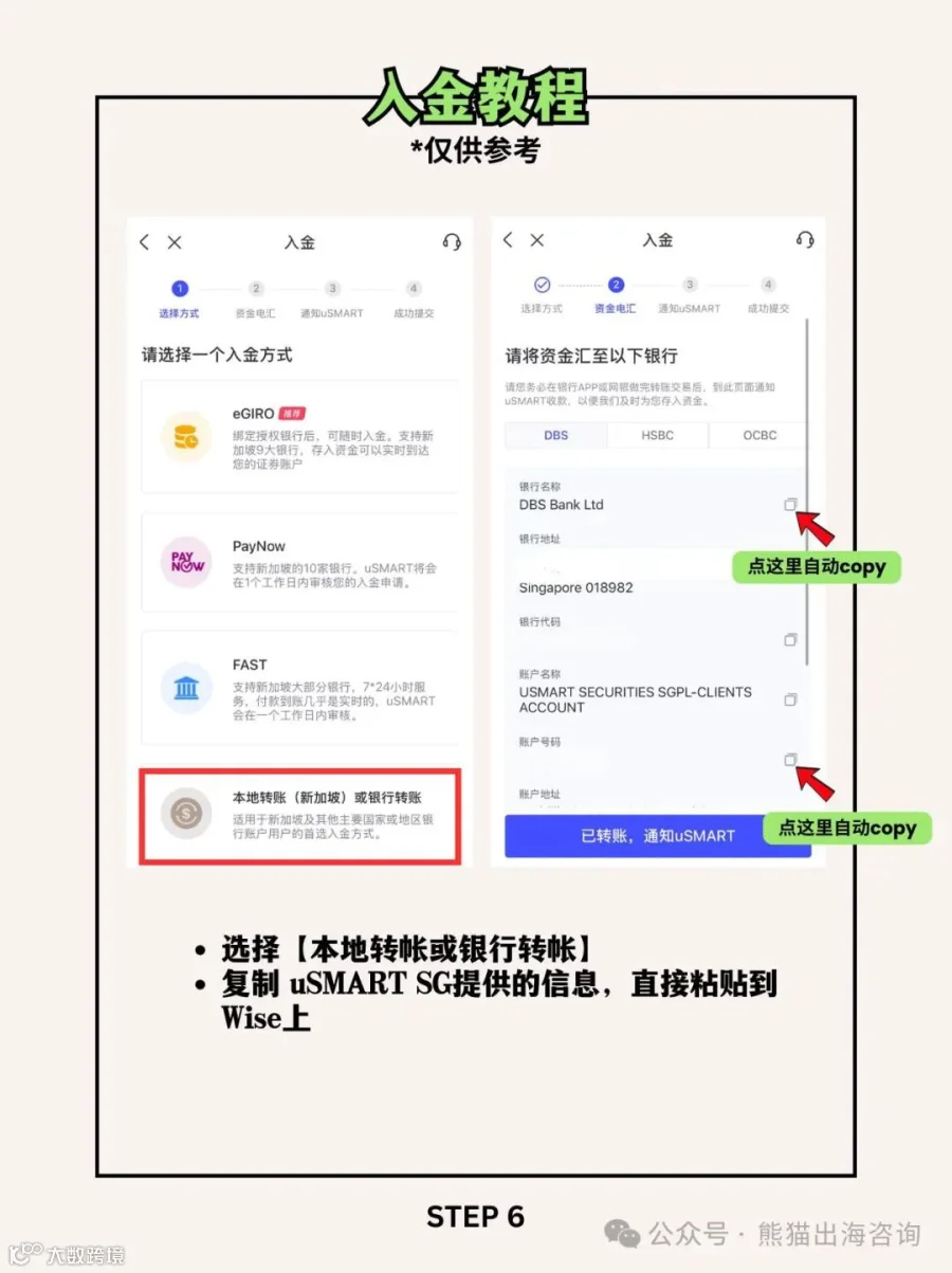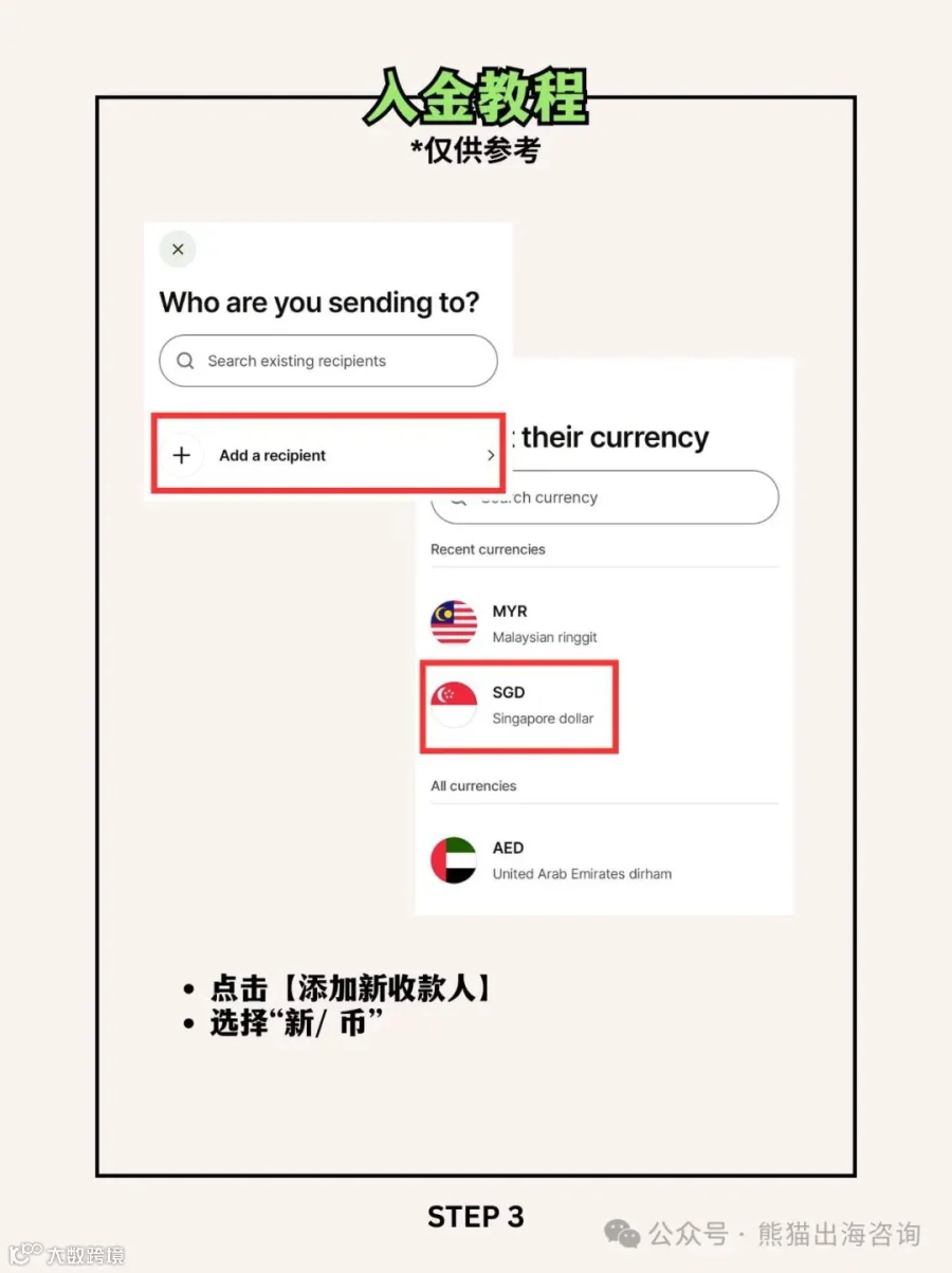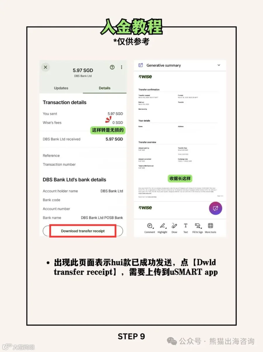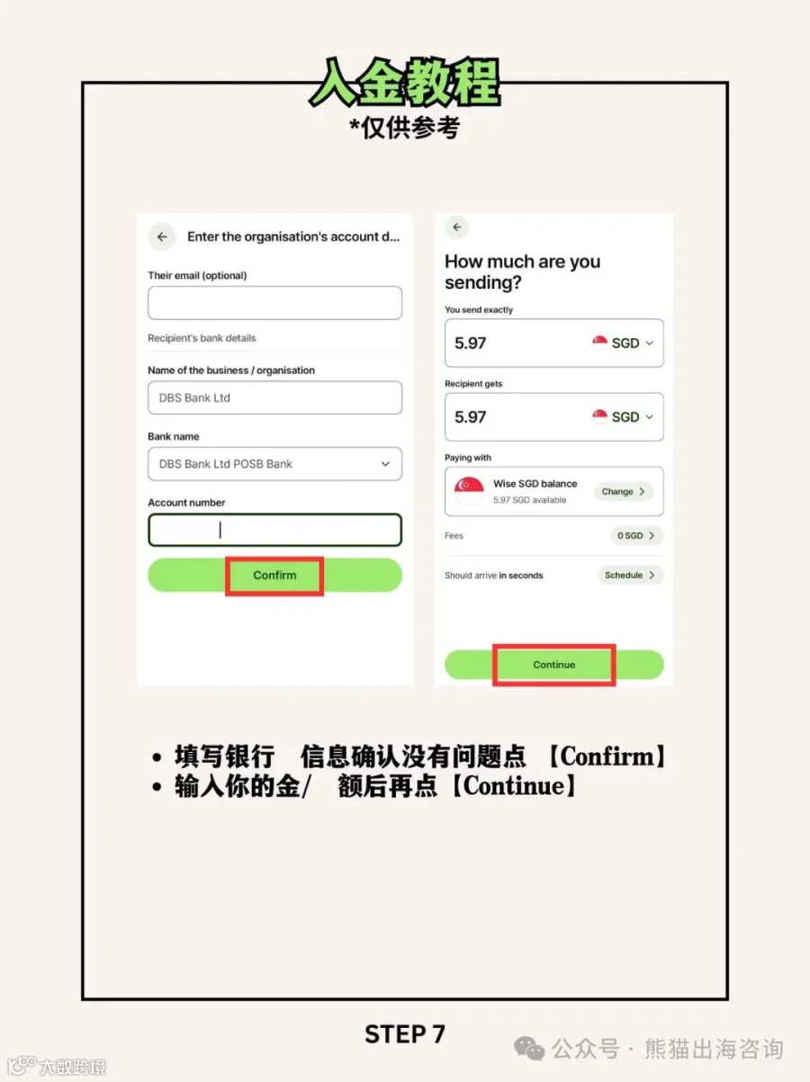 获取帐户详细信息后通过银行电汇方式向你的Wise新币帐户汇款(单笔汇款手续费200)。