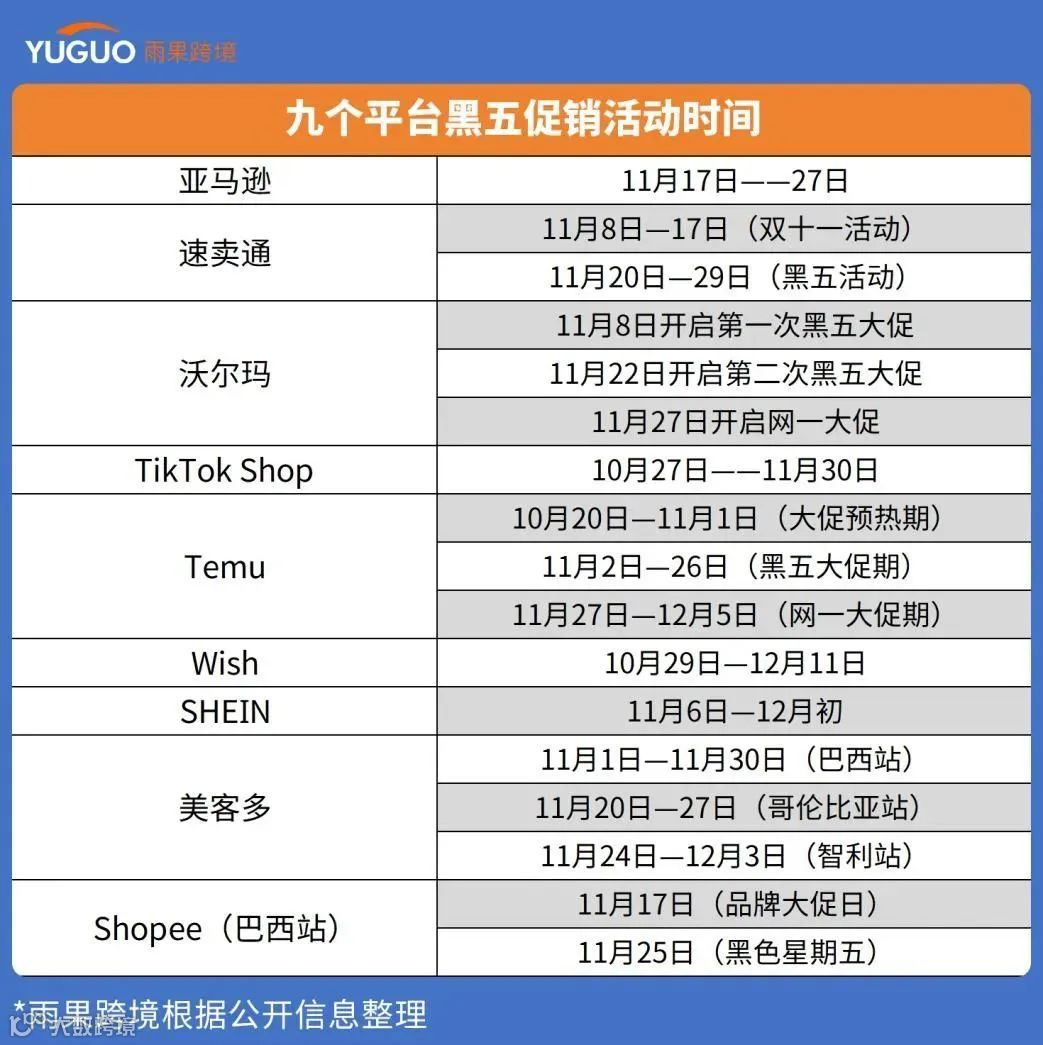 黑五大促时间表!亚马逊等九大跨境平台正式公布