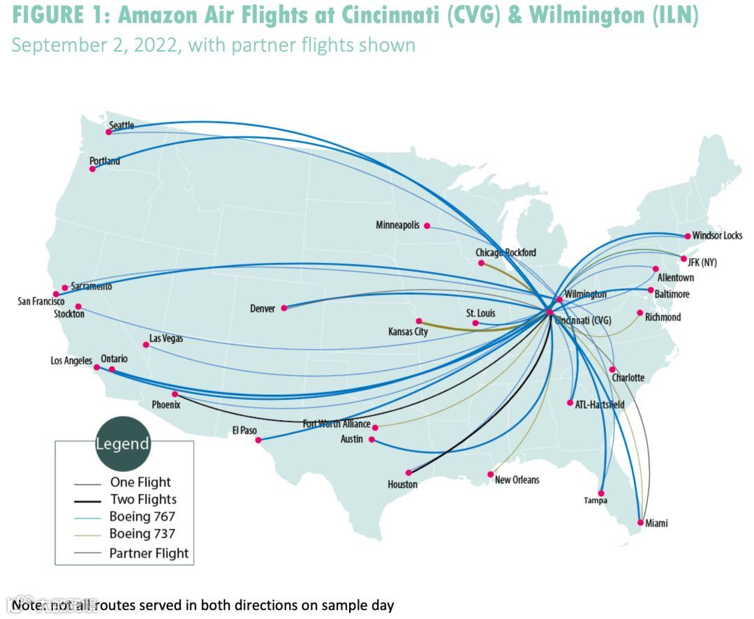 亚马逊航空在辛辛那提/北肯塔基机场的航线结构