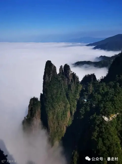 大天台以垂直落差300米的险峻著称,被称为“中南第一险”。站于崖边,群峰叠嶂如浪奔来,气势磅礴,令人心潮澎湃。