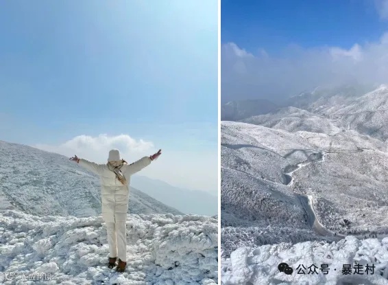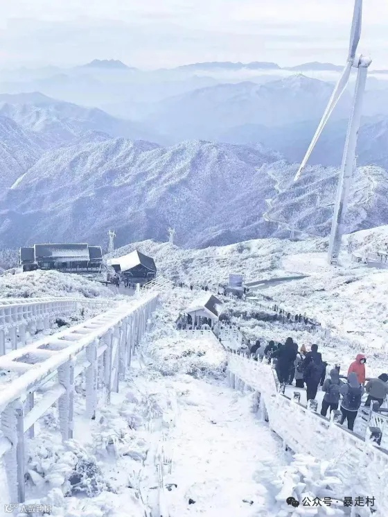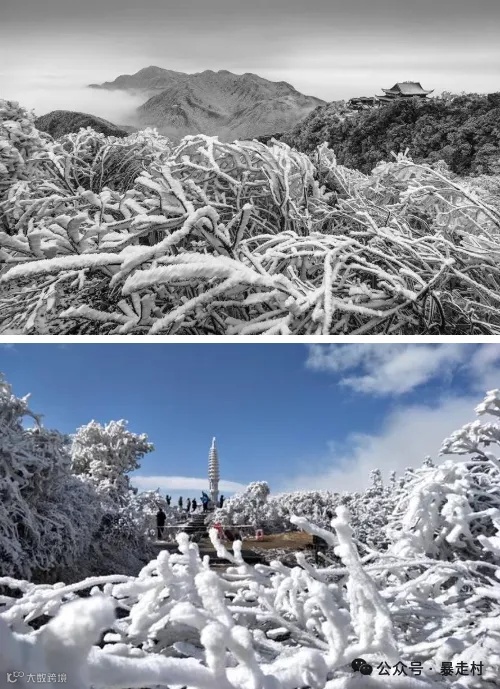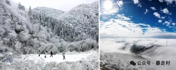 每年12月至次年2月,云冰山迎来最佳赏雪期,雾凇、冰挂遍布山野,竹林、草甸、悬崖皆银装素裹,宛如童话世界。阶梯与栈道覆满冰霜,仿佛通往天际。