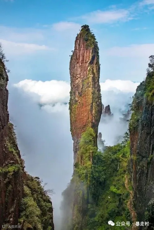 金鞭大峡谷中的“金鞭神柱”高达120米,直径约20米,形似擎天石柱,巍然耸立,被誉为莽山镇山之宝,极具视觉冲击力。