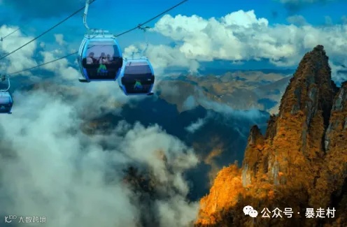 景区配备全国单线最长索道(3.7公里,落差1000米)及摩天岭垂直电梯(140米高,49秒直达山顶),实现轻松上下山,兼顾安全与观景体验。