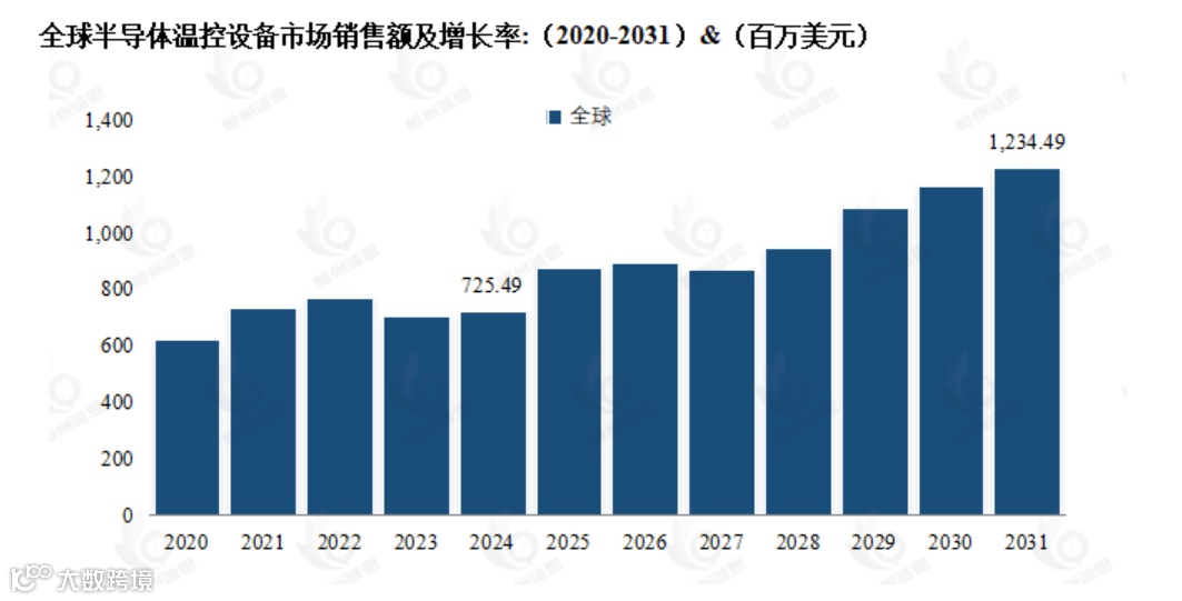 据恒州诚思(YHResearch)调研,2024年全球半导体温控设备(Chiller)市场规模达7.25亿美元,预计2031年将增长至12.34亿美元,2025–2031年复合增长率(CAGR)为5.85%。