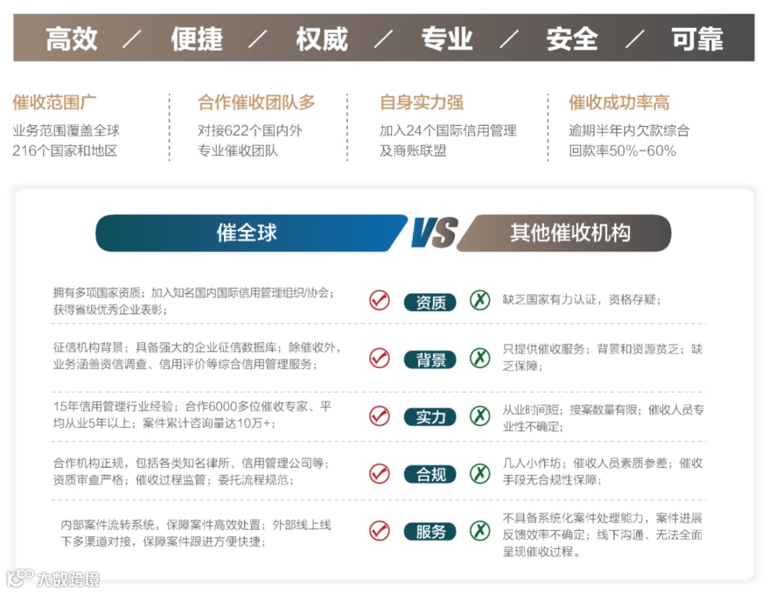 催全球作为全球账款催收专家,愿与中国企业一起,捍卫企业应得利益,绝不让国内外老赖占我们便宜。