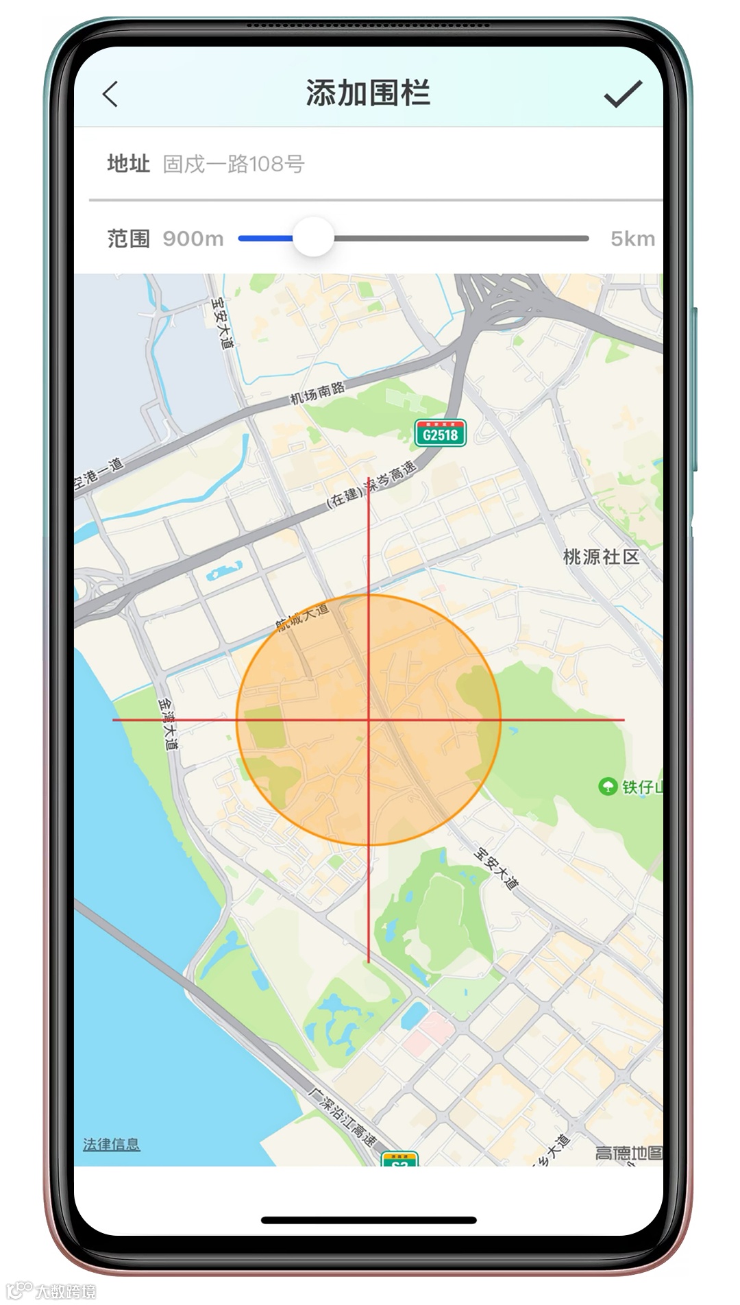 【电子围栏】设定安全区域,超出范围即时提醒。
