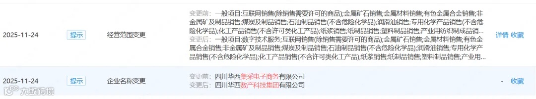 小供注意到,此前,四川华西集团发起旗下四川华西数产科技集团有限公司正式完成工商流程,公司注册资本3.7亿元。四川华西数产科技集团有限公司由四川华西集团电子商务有限公司更名而来。小供注意到,华西数产集团建设并运营华西集团统一供应了金融平台。
