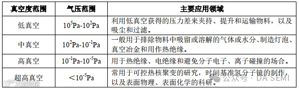 真空度分级与行业分类