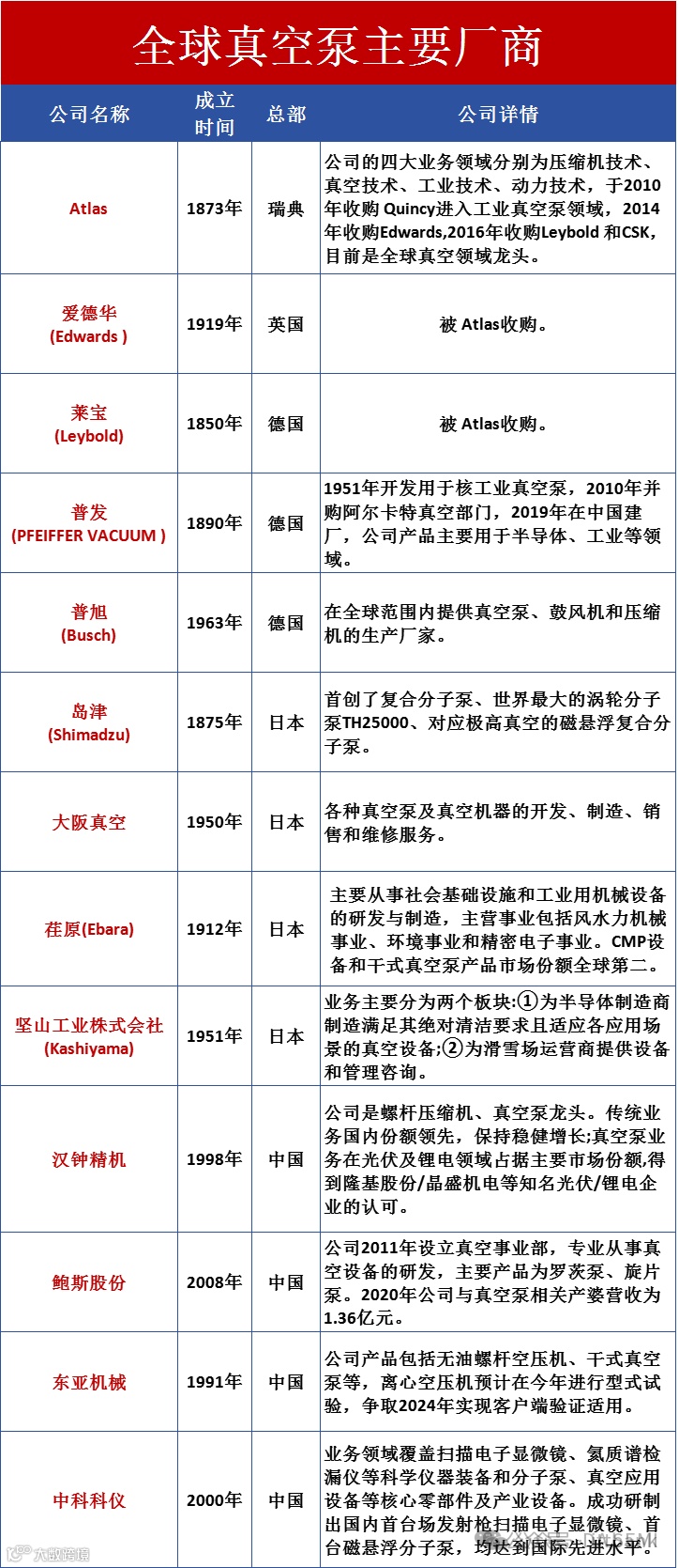 国内外主要真空泵厂商介绍