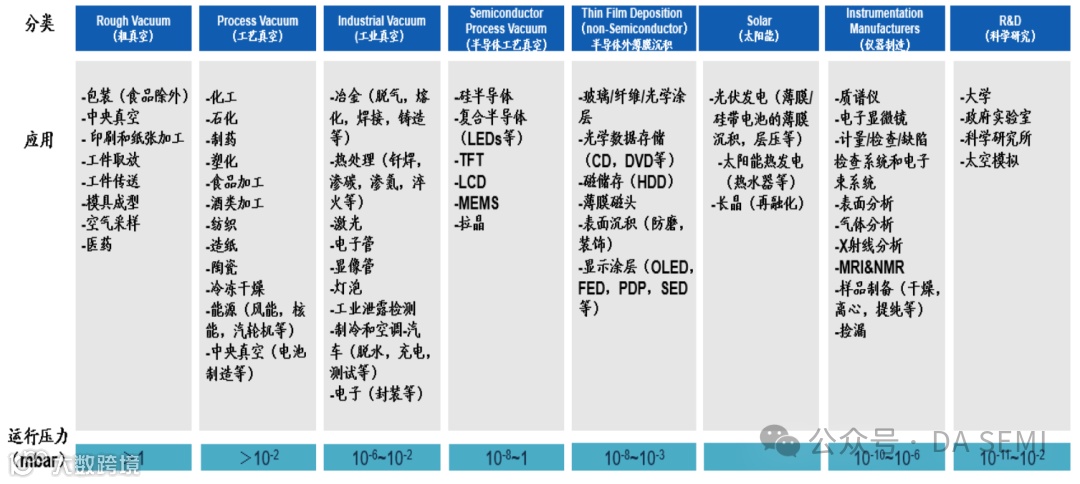 依据国际真空技术统计工作组(ISVT),真空行业分为八大类: