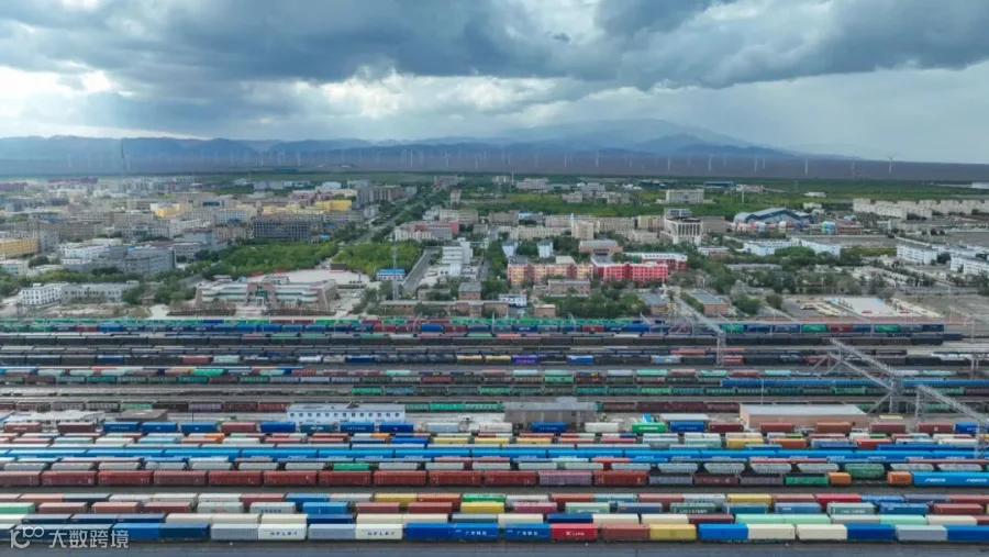 驰骋的中欧(中亚)班列与口岸风电机组。