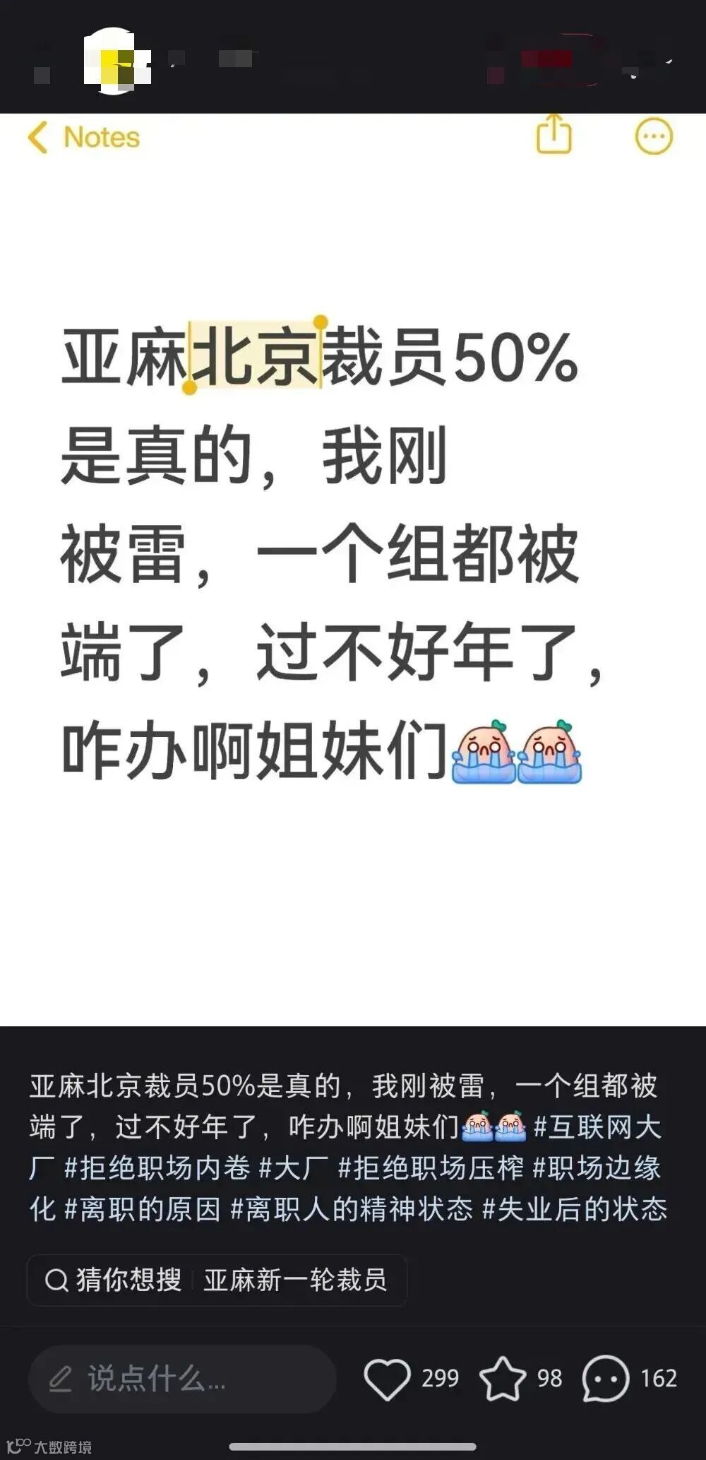 实际上,此次裁员早有预兆。小红书等社交平台此前已有员工爆料称,“北京办公室或裁员50%”,并猜测裁员邮件将在1月28日凌晨发送。