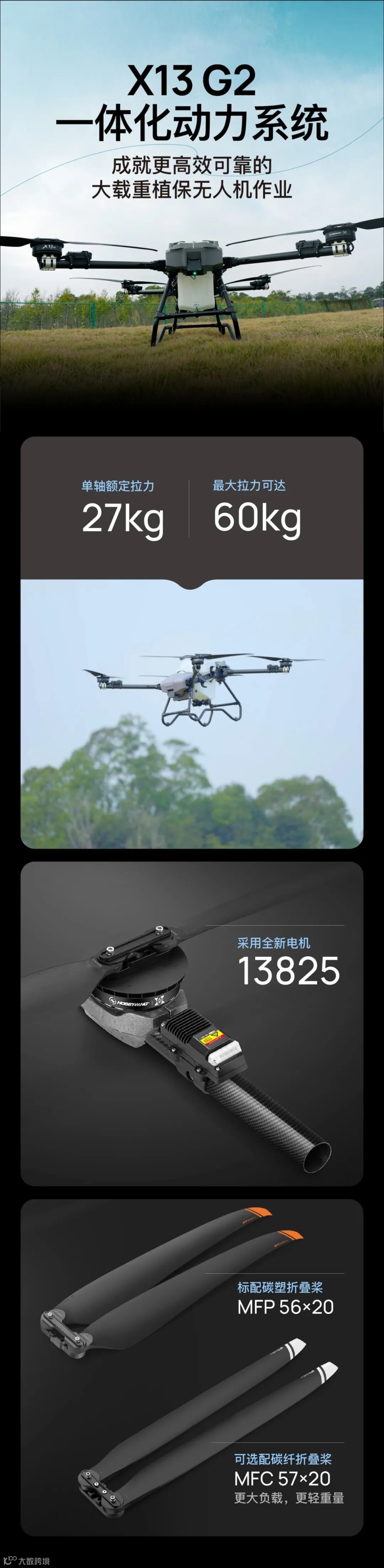 全新X13 G2一体化动力系统发布,50L植保无人机作业更高效