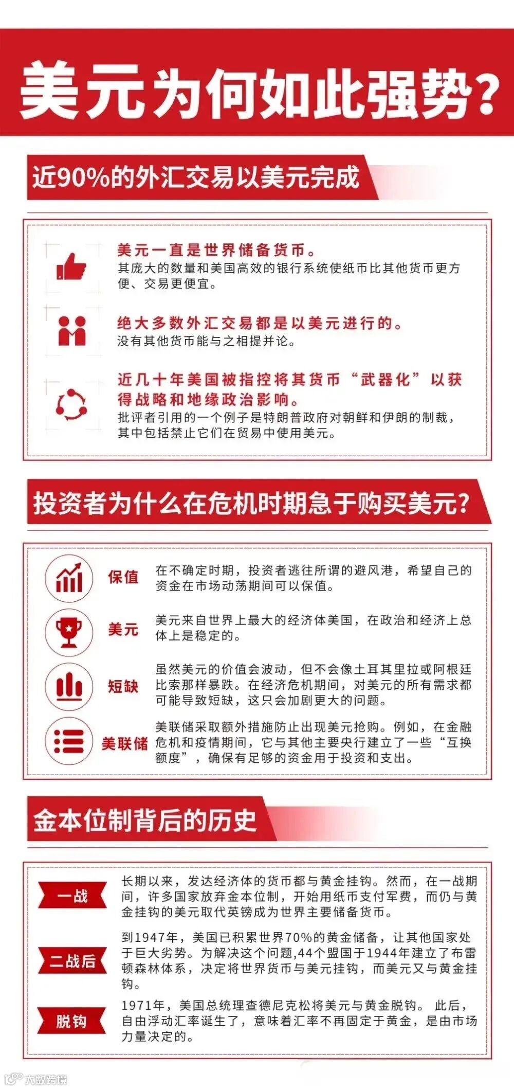 美元的全球主导地位从未被动摇,这也是危机时期投资者争相持有美元的关键原因。