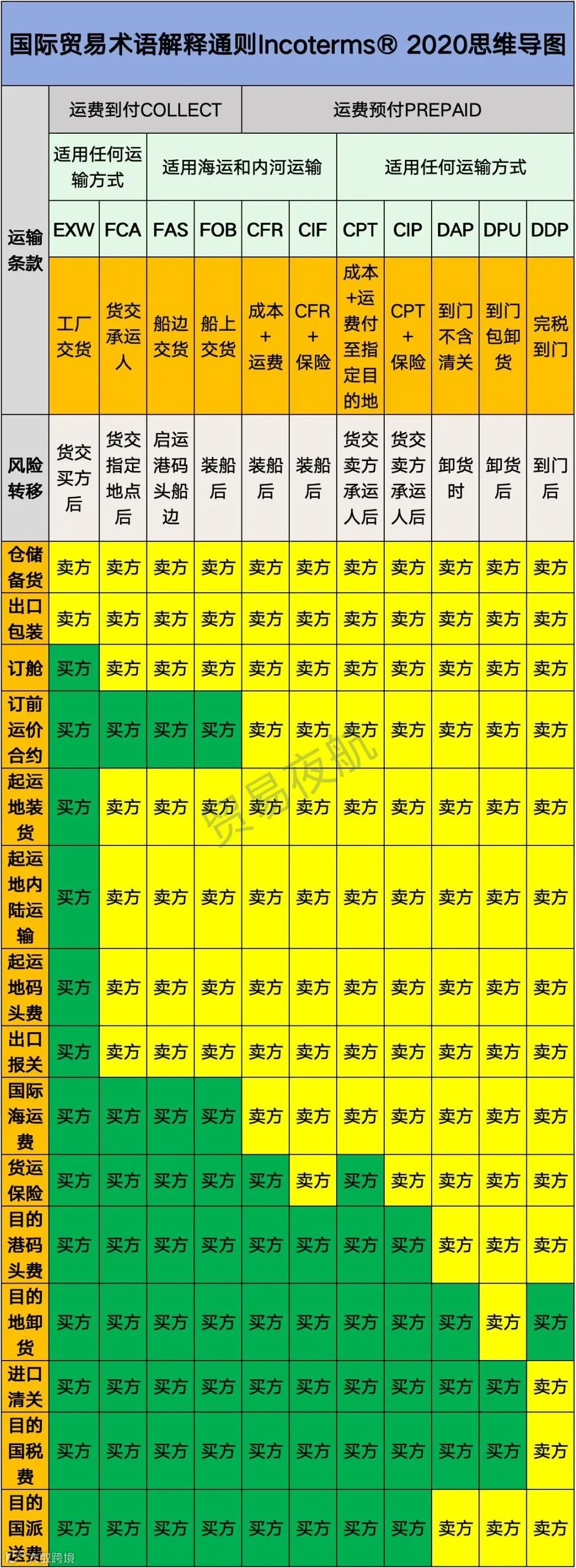 卖方承担最大责任,包括运输、清关及至目的地的所有费用与风险。