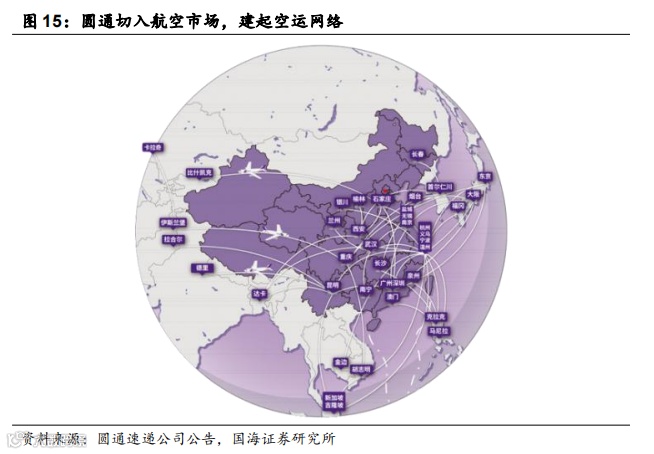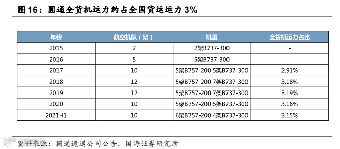 2015年,买下15架波音飞机的圆通航空正式开航运营,成为通达系中唯一一家拥有自有航空货运公司的快递企业。为推进国际航空货运业务的发展,圆通积极开拓航线、调整机队结构与规模,截至2021上半年,圆通航空现有机队规模共10架,包括6架波音757-200,4架波音737-300,航线已基本覆盖东南亚、东北亚等地区。
