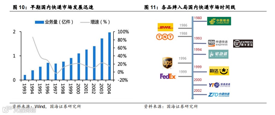 1992年邓小平发表南方谈话后,长三角地区进出口贸易发展迅速,带动了个体商户对外贸报关单等小包裹的需求;2001年,中国加入WTO打开了国际贸易大门,随着经济活动日益频繁,跨区域贸易的发展迅速,进一步增长的进出口贸易量刺激了企业对商务件的需求。