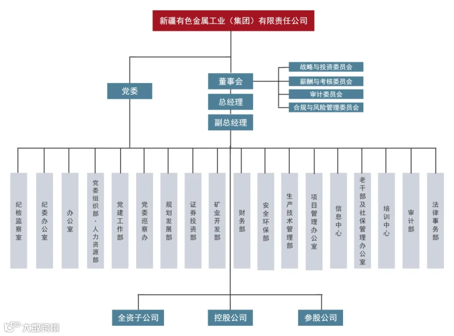 分子公司:拥有两家分公司(阜康冶炼厂、上海销售分公司)、四家全资控股子公司(如新疆喀拉通克矿业有限责任公司、新疆亚克斯资源开发股份有限公司等)及三家控股公司