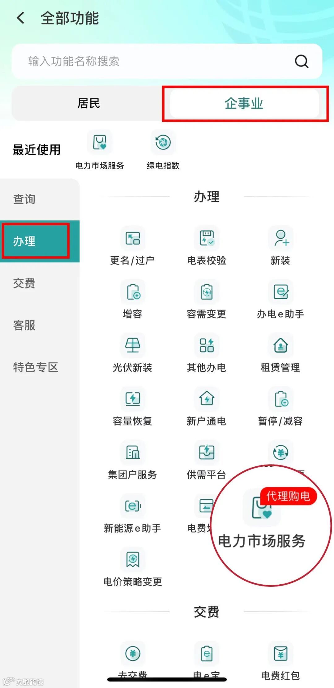入口一:登录网上国网App,通过【首页】-【更多】-【企事业】-【办理】-【电力市场服务】了解详情。