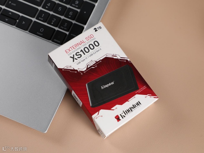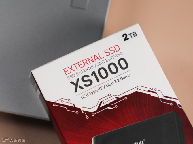 金士顿XS1000采用紧凑型包装设计,正面展示产品实图,并标注型号与容量信息,本次评测为2TB版本。