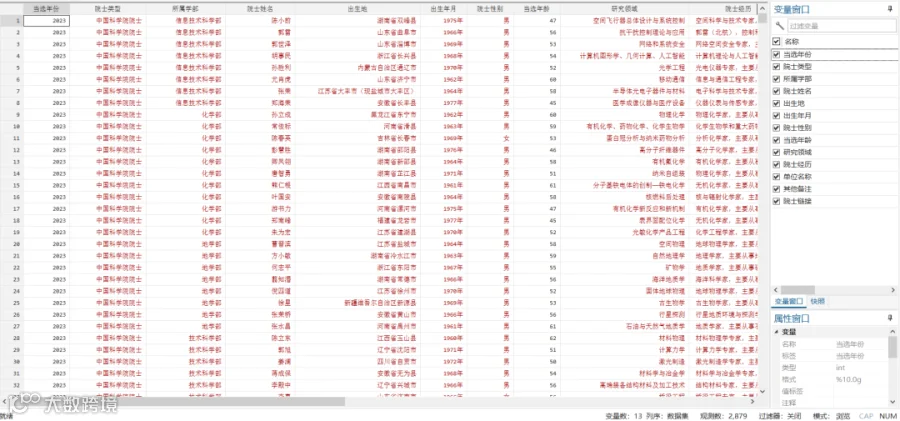 - 数据说明:包含院士基本信息、学术背景、所属学部、研究方向及职业经历等字段