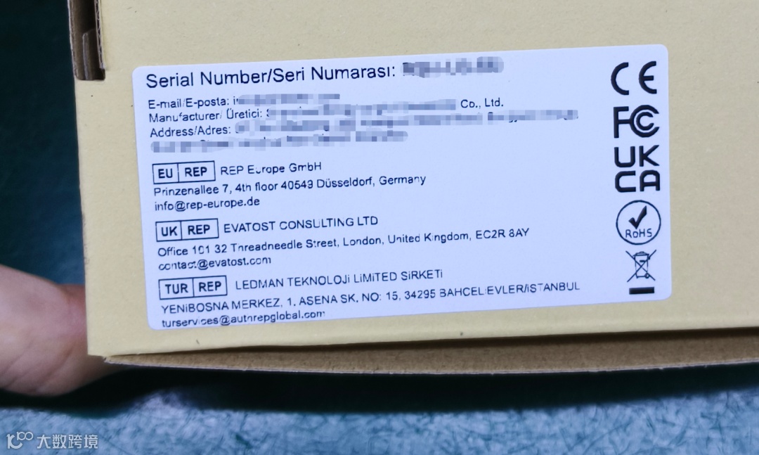 制造商信息必须与CE、FCC、RoHS、UKCA等证书所列一致。对于外购产品,制造商栏应填写证书上的“Manufacturer”信息。
