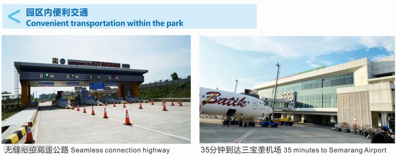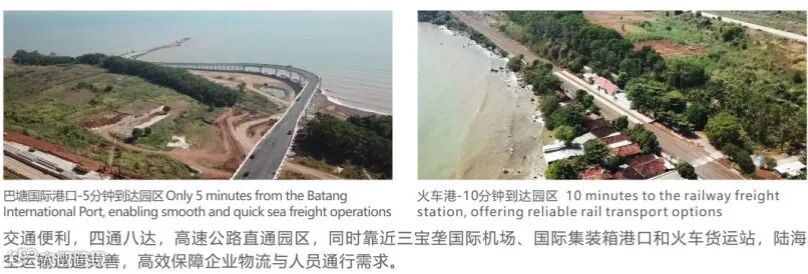 项目位于印尼中爪哇省三宝垄市海拔80米的巴塘经济特区,交通便利。临近三宝垄港和泗水港,距雅加达市中心387公里,距三宝垄国际机场58公里,车程约50分钟;5小时内可通达印尼最大港口丹戎不碌港及苏加诺哈达机场。园区紧邻高速公路,配套完善,为企业进出口提供高效物流支持。