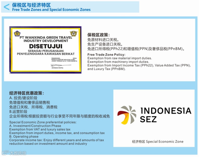 印尼政府为吸引外资提供企业所得税减免、进口设备关税豁免、增值税缓缴等税收激励措施。经济特区内企业还可享受额外优惠,有效降低运营成本,提升投资回报。