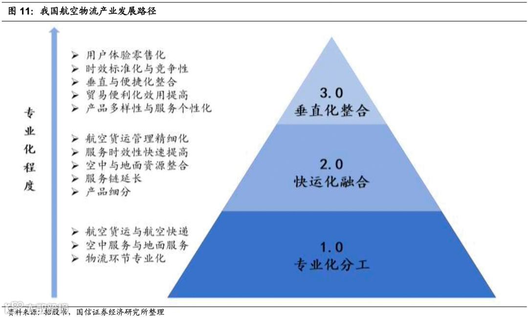 第三阶段是伴随着客户需求日趋丰富,航空物流服务提供者更注重客户服务体验,丰富服务内容的垂直化整合阶段。